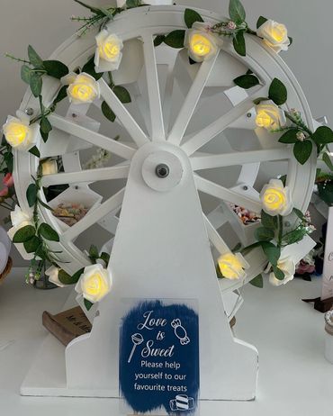 All Hire includes delivery, sweet bags, sweet tongs, flower decoration as per photo and collection.