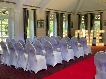 * CANCELLATION OF ITEMS HIRED IN ADDITION TO OUR ALL-INCLUSIVE PACKAGE: If for any reason you wish to cancel additional items hired at a discounted rated alongside our All-inclusive Package, the above cancellation charges will be applicable at the full individual item hire price. For example, if you contract to hire our LOVE Letters alongside your Wedding Package at a reduced price of £75 and subsequently cancel them, charges will be levied on the full hire price of £125