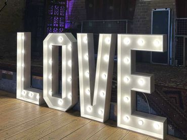 Each Letter is individual and can be set up On a stage, on the floor or in the corner of the room providing there is electrical points.